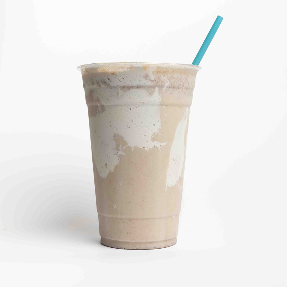 Almond Milk, Vanilla Protein, Flax, Almond Butter, Maple Syrup, Cacao Nibs (Marshmallow and Graham Cracker Topping)